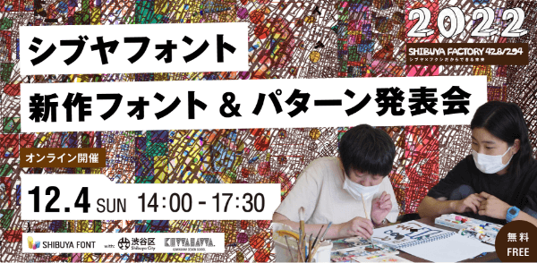 2016年度より始まった渋谷区事業「シブヤフォント」。現在、440種以上の商品となり、世界中から注目されています。 今年で3回目となる「SHIBUYA FACTORY 428/294(シブヤファクトリーシブヤ/フクシ)」では、多彩にひろがるシブヤフォントの魅力と渋谷の街と人々がシブヤフォントによってつながる様子をご紹介いたします。 新しいアートの未来につながるシブヤフォントの可能性をぜひ感じてください。